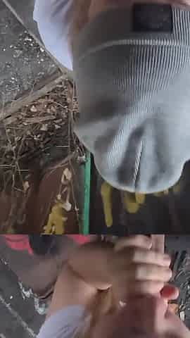Blonde Deutsche Blowjob Gesichtsbesamung im Freien