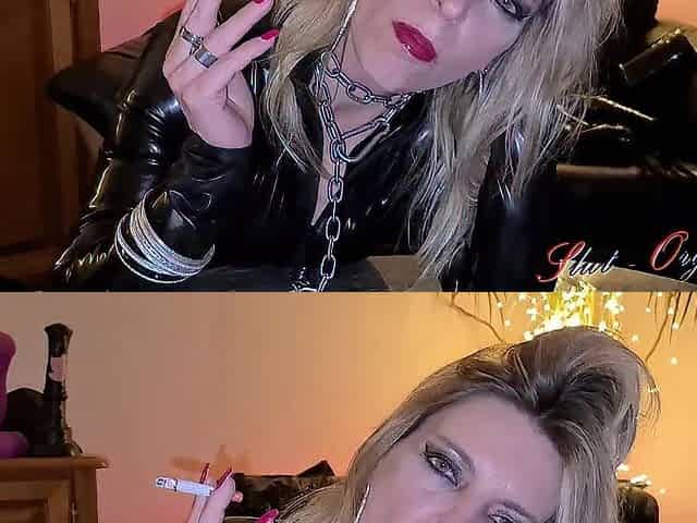 Floozy Whore-Orgasma Celeste drilled by a customer at home in ebony latex