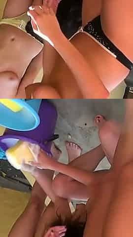 Naked Babes Sucking Cock and Washing Jeep Outdoors