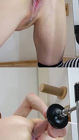 Squirting Dildo on My Fucking Machine and Lots of Lube