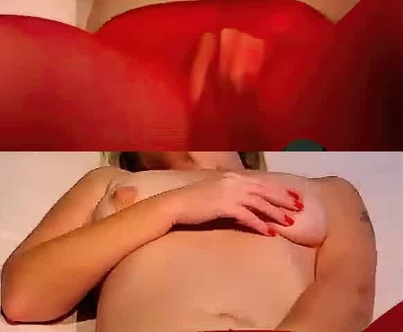 Die deutsche MILF Tina spielt in roten Strumpfhosen.