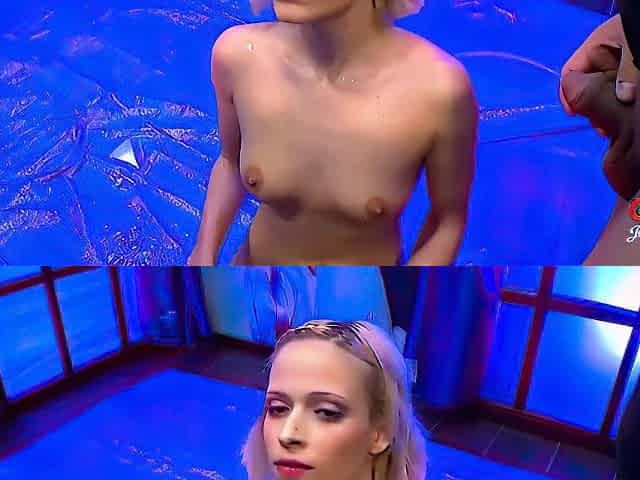 Super hot platinum-blonde gets her little tits pleasured by a stranger in a camper van
