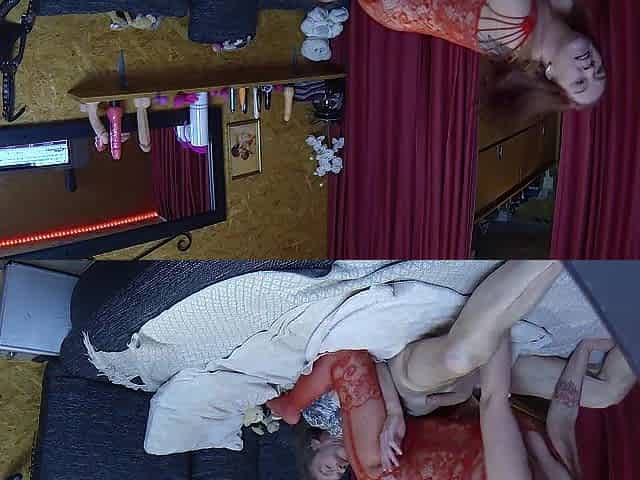 Slim brunette Nora Devot takes on a risky remote-controlled adventure in the kitchen studio