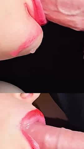 Mfm Threesome: Kneeling & Sucking Two Big Cocks Until Messy Double Cumshot (mouth & Face)