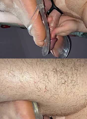 Hose tugjob cum on feet