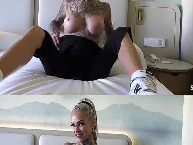Brunette Inked-kathy Shows Her Wet Pussy In Solo Masturbation On