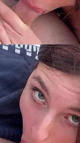 Modest slender 18yo beauty enjoys banging and gets cum in throat [Deutsch]