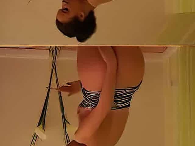 German teen with small tits fucks in front of mirror for secret lover