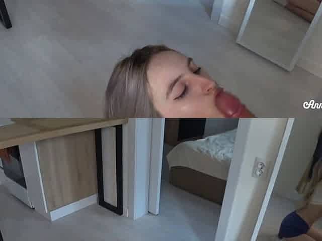 hot unexpected treat for the delivery guy! Giant load of cum