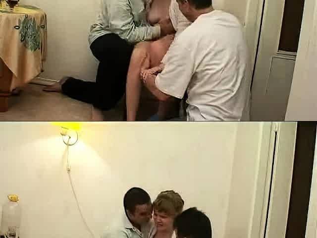 Old lady gets fucked in the kitchen