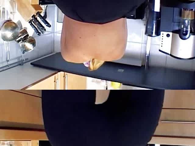 "A curvy blonde slut from Germany riding a hard cock in the kitchen"
