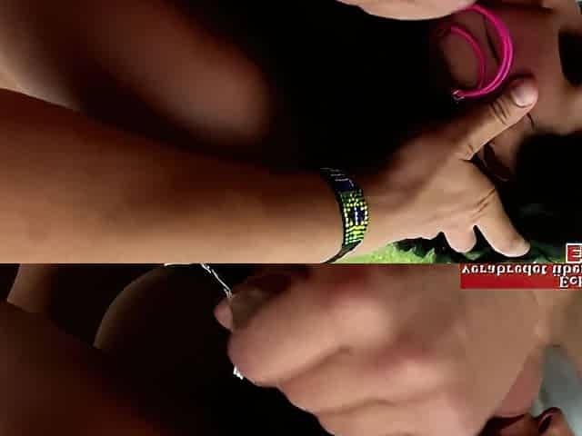 Fette Brunette Bumst Zwei Typen Vor Der Kamera