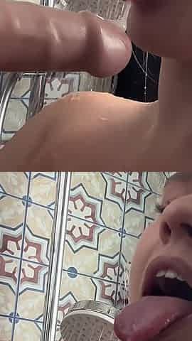 Youthful brunette hair German sugar mouse sucks hard weenie and swallows the cream