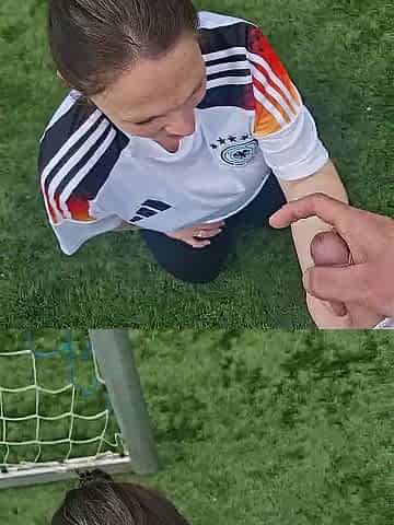 Hübsche Mutter lässt sich beim Fussball ins Gesichts spritzen