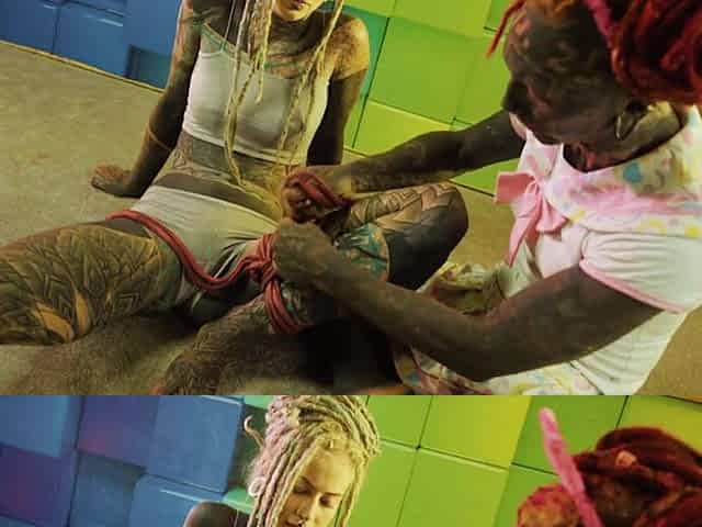 Tattooed German Babe Fucked in Hot BDSM Threesome