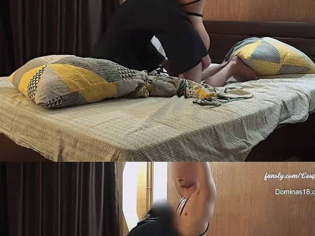 Amateur milf wife subjects submissive husband to femdom BDSM training with cake sitting and sploshing
