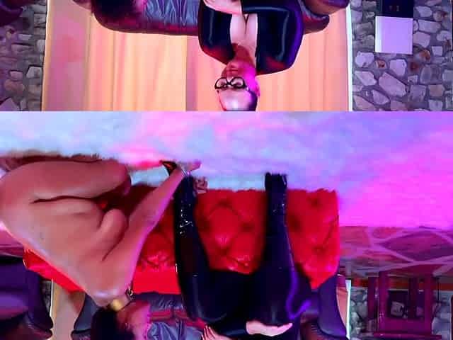 Hot German MILF playing with her former slave in the living room