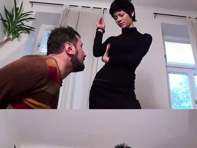 Dominant Mistress punishes boot sniffer for his deviant behavior