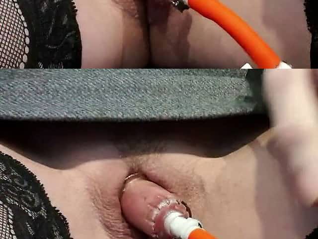Reife Lesbe mit Elektrosex und Vibrator zum Klitorisorgasmus