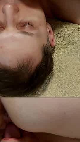 Girl Fucks His Face and Cums in His Mouth, Femdom Facesitting, Cum Feeding, Shaking Orgasm