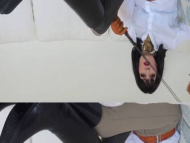 White blouse, boot worship