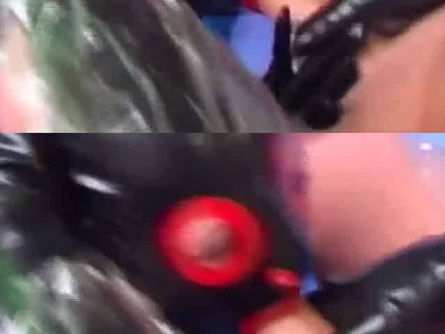 Masked guy and big boobs dominating pussy fucking in latex cum in mouth