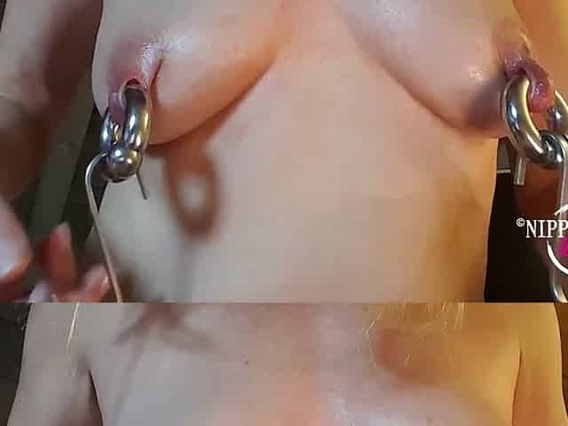 Nippleringlover Horny Milf 12mm Rings In Nipples Lifting 300gr Weights With Extreme Stretched Pierced Nipples