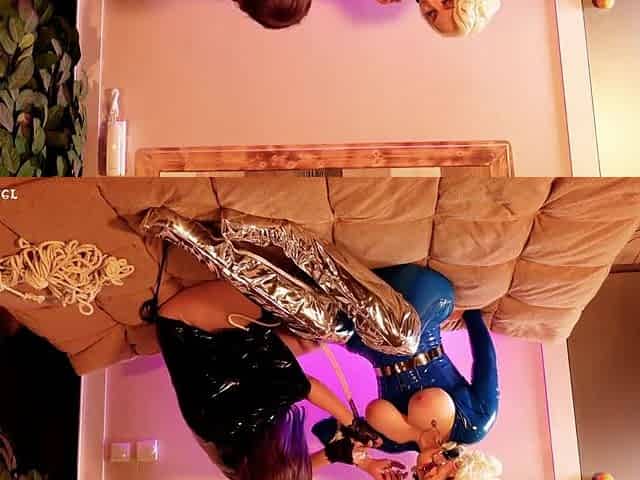 Positive Femdom Lesbian Rope Bondage Process Milf In Latex Rubber With Gag With Arya Grander