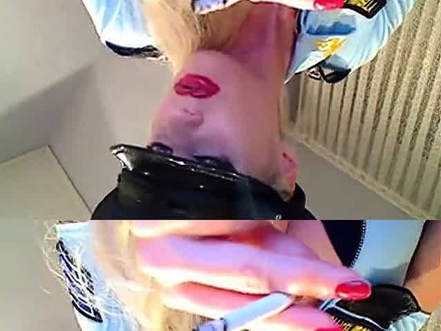 Blonde deutsche Femdom raucht und dominiert vor der Webcam