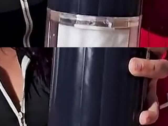 Male in latex suit sucking red nail toes sniffing vagina out of a bottle