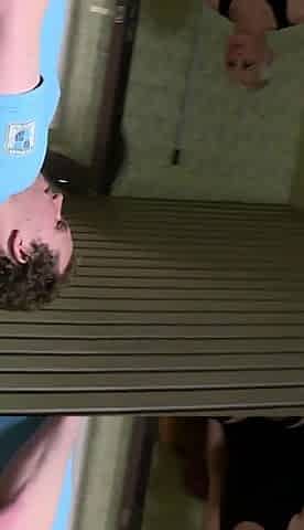 Strange encounter as a midget hooks up with stunning German teen Tini in a public toilet