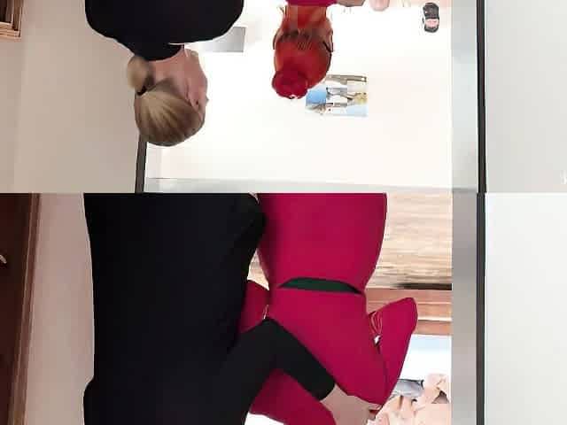 Blonde german milf opens her pussy desperate to be penetrated by two big cocks while being filmed in pov inside the room