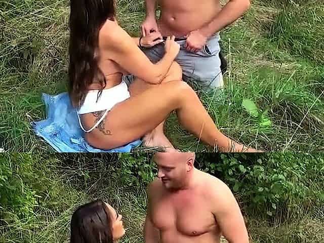 A stunning brunette babe gets fucked at the public park