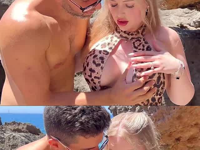 German with a big cock met a busty blonde on public beach and fucked her in outdoor