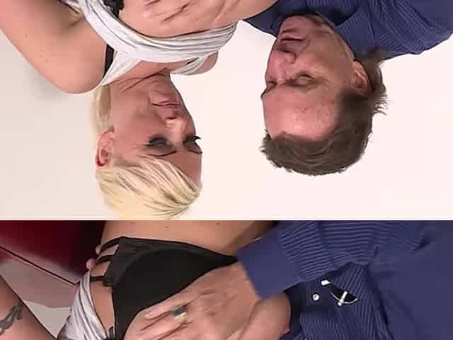 Blonde deutsche Schlampe wird von einem Streber gefickt