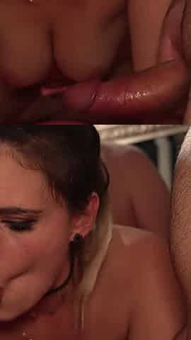 Spunk fountain auf die Titten schlampe leckt sperma