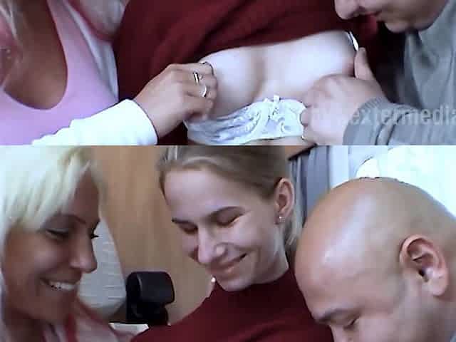 Incredibly large GERMAN TEEN receives homemade penetration in intense threesome