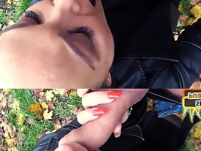Curvy German amateur lady sucks cock outdoors in public