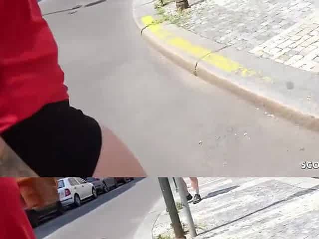 German chubby blonde slut picked up for public blind date