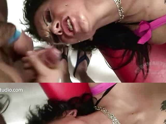 2 breasty MILFs get screwed by multiple males and filled up with semen