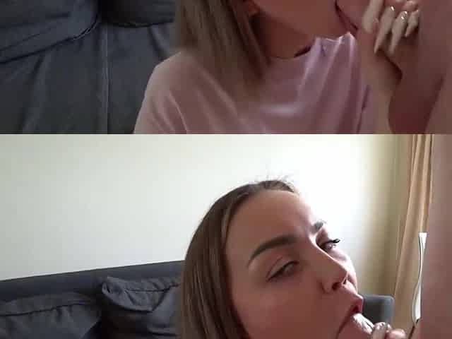 Modest slender 18yo gal enjoys banging and gets cum in throat [Deutsch]
