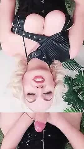 Mistress Gets Deepthroat Strapon Dildo Blowjob and Facefucks Her Submissive