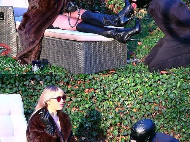 Hot Girls Dominate Kneeling Men in Heels and Skirts