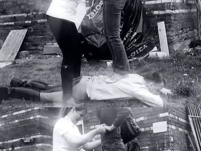 Outdoor shoe cleaning by Femdom Austria