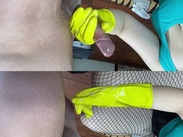 The rubber boot leg fucker squirts!