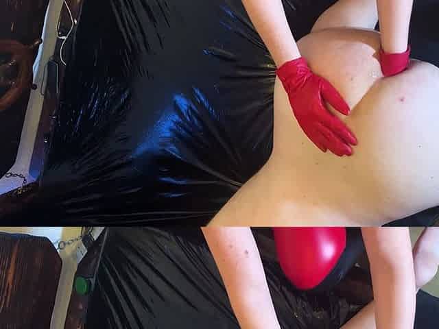 Fisting with Hot Red Leather Gloves