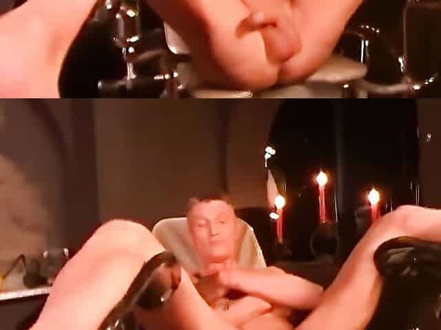 Dr. Anna. Black Gloves and Strange Toys. Dominant Handjob. Makes Him Cum on His Own Body.