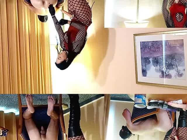 Mistress In Overknee Ballet Heels Lingerie And Latex Gloves Fucks Let Slave Swallow His Cum!