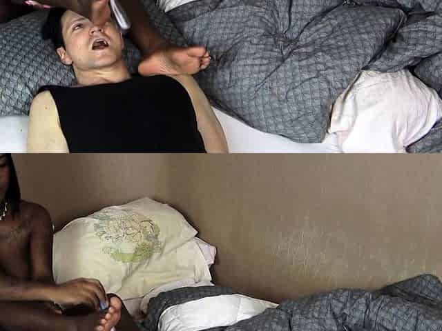 Foot Slave Humiliated in Fishnet Tights