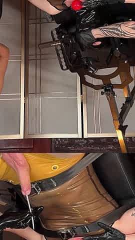 Strict Senz dominates in red latex while my sissy takes the punishment